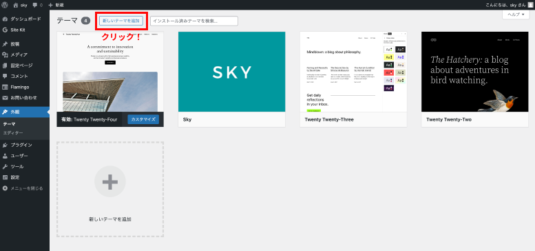 ・「新しいテーマを追加」ボタンをクリックします。