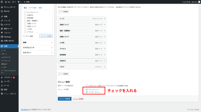 ・「メニューを保存」ボタンをクリックします。